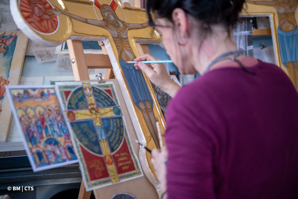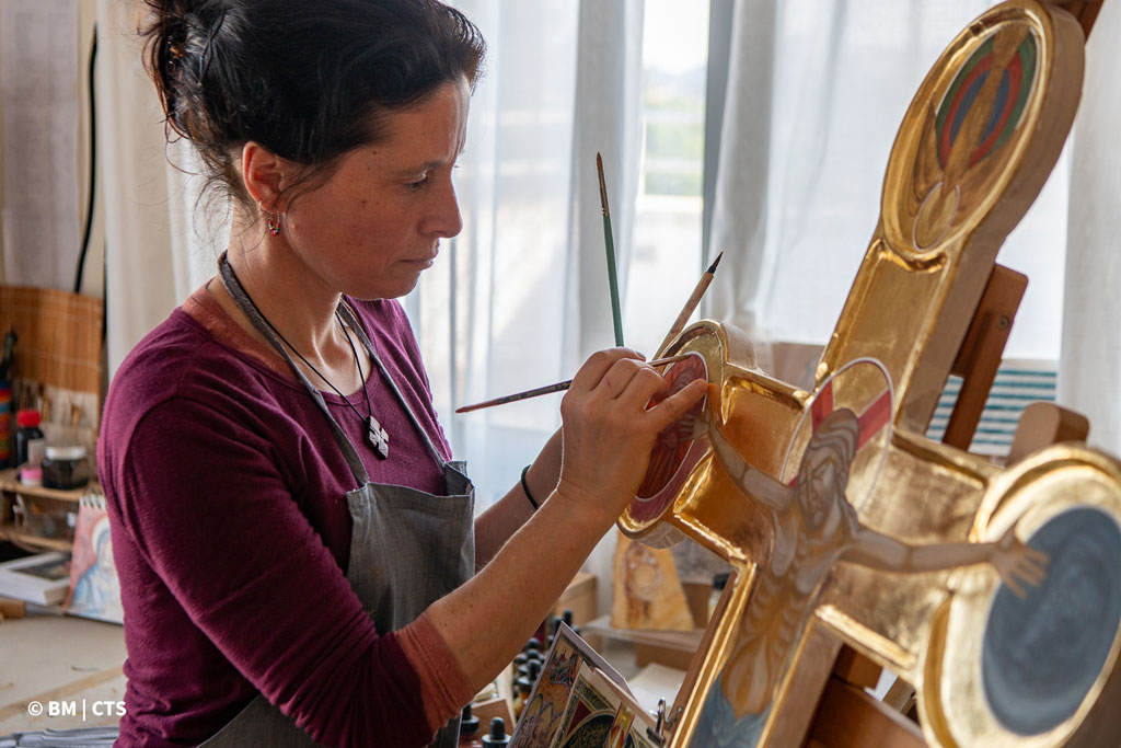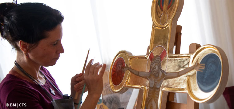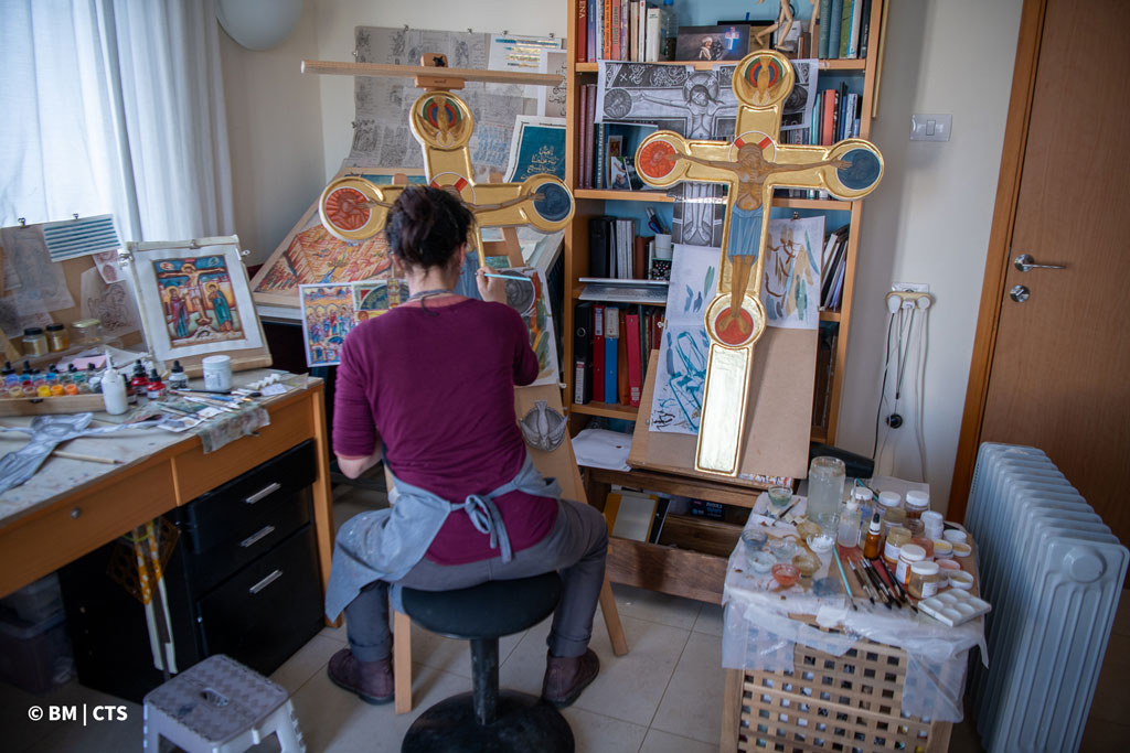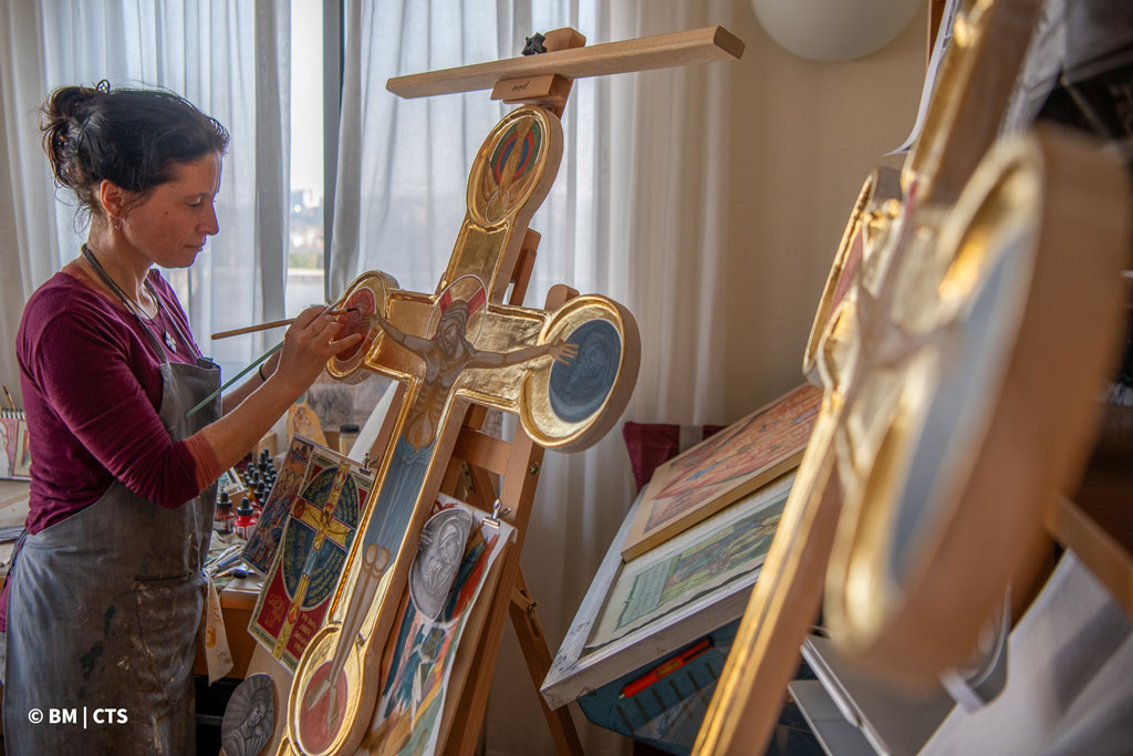 Chrystus w chwili śmierci powierzył Duchowi Świętemu narodzony z jego przebitego boku Kościół. Na bokach ramion krzyża umieszczone zostały personifikacje słońca (w kolorze czerwonym) i księżyca (w kolorze błękitnym). To wskazanie na wszystkie ciała niebieskie, gdyż dzieło odkupieńcze Chrystusa objęło cały wszechświat: „Wszystko bowiem [Bóg] rzucił pod stopy Jego” (1Kor 15,27). U dołu krzyża znajduje się napis: „W nadziei jesteśmy zbawieni”. Jest on utrwalony w trzech językach: po grecku (język oryginalny Nowego Testamentu), po łacinie i arabsku, czyli w językach w których sprawowana jest liturgia w Ziemi Świętej). Maria Ruiz odwołuje się do „bogatego w artystyczne tradycje chrześcijańskie stylu. To na tej ziemi był on obecny i wymownie przemawiał do chrześcijan. Tak samo przemawia do współczesnych chrześcijan, należących do tradycji wschodnich, jak i łacińskiej”. Artystka wzorowała się szczególnie na tradycji ormiańskiej która, według jej opinii „pozwala przekazywać uniwersalne przesłanie”. Nie chodzi jednak wyłącznie o „interpretację Ukrzyżowania (Zbawiciela)”, podkreśla autorka. Dalej wyjaśnia: „Postanowiłam być posłuszna pewnemu językowi w formie wyrazu, aby przekazać w sposób wyraźny przesłanie, które nie pochodzi ode mnie”. Jak każdy twórca ikon, Maria pracowała, modliła się i przez formy artystyczne wyrażała swoją wiarę. Drewno na ikonę zostało przygotowane w Betlejem (w centrum im. O. Michała Piccirillo). Na początku zostało ono pokryte gipsem, wyzłocone, a później artystka przystąpiła do malowania. Zastosowała „metodę tradycyjnej ikonografii”: na ciemnym tle, nakreśliła jasne kontury, dające formę postaci i obliczu Chrystusa. Wszystko rodziło się w atmosferze wiary i modlitwy: „Nie można stworzyć dzieła, takiego jak to, bez wiary w przesłanie nadziei, jaką niesie krzyż”. Artystka przyznała, że była to jej najtrudniejsza praca do wykonania. Stało się tak ze względu na krótki czas, w którym miała zrealizować pracę, jak i własne przeżycia. „Jest zawsze taki moment, kiedy namacalnie doświadcza się obecności Bożej w ikonie, a nie jest to wynikiem mojego starania. Zrozumiałam ogromną przepaść, jaka istnieje między rzeczywistością, którą mam przedstawić, a tym kim ja jestem w rzeczywistości. Gdy maluję, noszę w sercu modlitwy wszystkich osób, które będą czciły święty wizerunek. Chcę to czynić z czystym sercem i pragnę, aby podobne pojednanie nastąpiło u osób, które spotkają Chrystusa dzięki temu krzyżowi”, wyznaje twórczyni krzyża jubileuszowego. Chwila, w której patriarcha trzymał w ręce krzyż, rozpoczynając Jubileusz w Bazylice Zwiastowania, wywołała „niesamowitą radość i był to moment wielkiej łaski. To przez moje ręce przeszedł symbol nadziei dla tego roku i dla diecezji”, powiedziała Maria Ruiz. Pozostałe krzyże przeznaczone są do sanktuarium Narodzenia Pańskiego w Betlejem i Grobu Świętego w Jerozolimie. Krzyże dla tych świętych miejsc nie są zwykłymi replikami. Artystka mówi, że nie chciała powtarzać tylko formy, poszczególnych elementów czy kolorów. „Przecież spotkanie z Ukrzyżowanym jest zawsze jedyne i niepowtarzalne, ciągle nowe. To tak, jak spotkać znajomą osobę, którą ciągle się poznaje. Nie wystarczy, że spotkało się Jezusa wczoraj, to obecność która wypełnia także i nasze dziś”, mówi na koniec hiszpańska malarka.