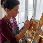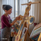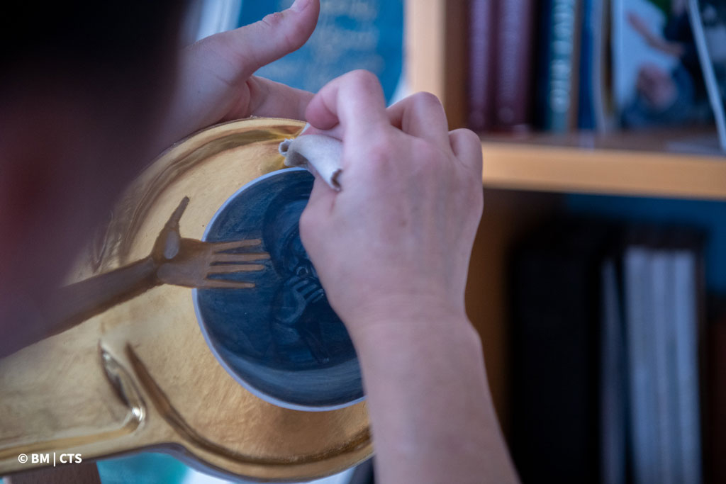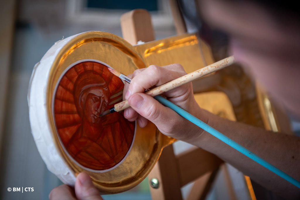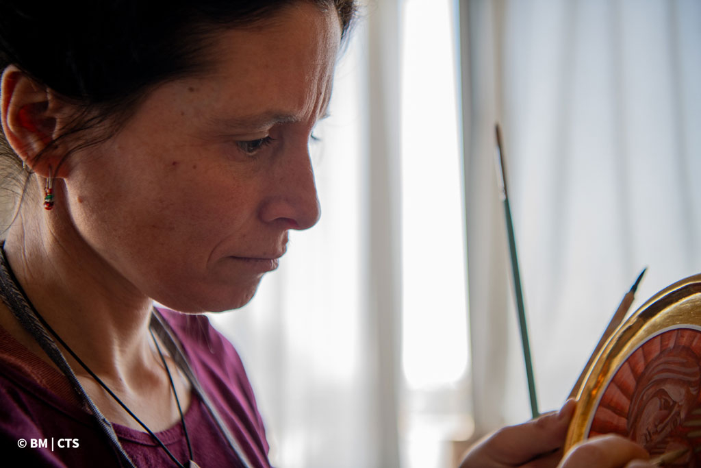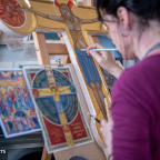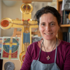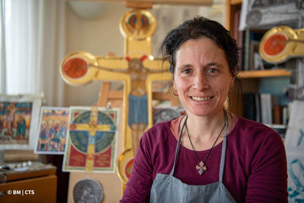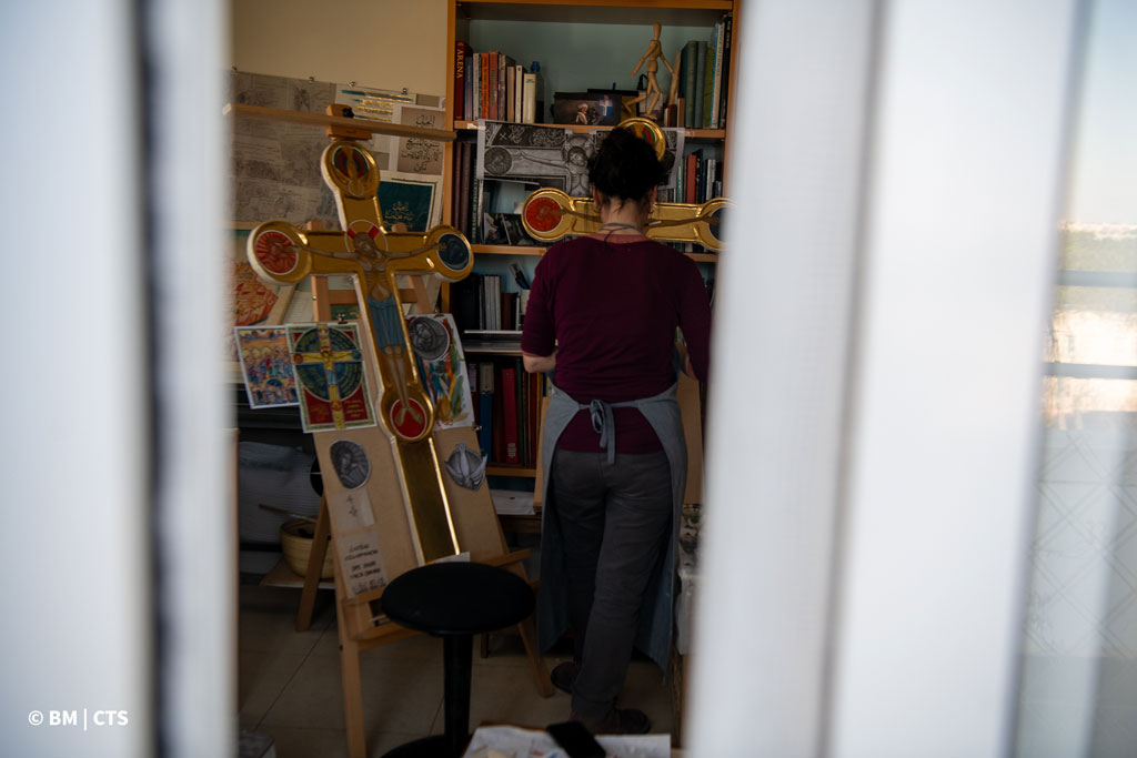 Chrystus w chwili śmierci powierzył Duchowi Świętemu narodzony z jego przebitego boku Kościół. Na bokach ramion krzyża umieszczone zostały personifikacje słońca (w kolorze czerwonym) i księżyca (w kolorze błękitnym). To wskazanie na wszystkie ciała niebieskie, gdyż dzieło odkupieńcze Chrystusa objęło cały wszechświat: „Wszystko bowiem [Bóg] rzucił pod stopy Jego” (1Kor 15,27). U dołu krzyża znajduje się napis: „W nadziei jesteśmy zbawieni”. Jest on utrwalony w trzech językach: po grecku (język oryginalny Nowego Testamentu), po łacinie i arabsku, czyli w językach w których sprawowana jest liturgia w Ziemi Świętej). Maria Ruiz odwołuje się do „bogatego w artystyczne tradycje chrześcijańskie stylu. To na tej ziemi był on obecny i wymownie przemawiał do chrześcijan. Tak samo przemawia do współczesnych chrześcijan, należących do tradycji wschodnich, jak i łacińskiej”. Artystka wzorowała się szczególnie na tradycji ormiańskiej która, według jej opinii „pozwala przekazywać uniwersalne przesłanie”. Nie chodzi jednak wyłącznie o „interpretację Ukrzyżowania (Zbawiciela)”, podkreśla autorka. Dalej wyjaśnia: „Postanowiłam być posłuszna pewnemu językowi w formie wyrazu, aby przekazać w sposób wyraźny przesłanie, które nie pochodzi ode mnie”. Jak każdy twórca ikon, Maria pracowała, modliła się i przez formy artystyczne wyrażała swoją wiarę. Drewno na ikonę zostało przygotowane w Betlejem (w centrum im. O. Michała Piccirillo). Na początku zostało ono pokryte gipsem, wyzłocone, a później artystka przystąpiła do malowania. Zastosowała „metodę tradycyjnej ikonografii”: na ciemnym tle, nakreśliła jasne kontury, dające formę postaci i obliczu Chrystusa. Wszystko rodziło się w atmosferze wiary i modlitwy: „Nie można stworzyć dzieła, takiego jak to, bez wiary w przesłanie nadziei, jaką niesie krzyż”. Artystka przyznała, że była to jej najtrudniejsza praca do wykonania. Stało się tak ze względu na krótki czas, w którym miała zrealizować pracę, jak i własne przeżycia. „Jest zawsze taki moment, kiedy namacalnie doświadcza się obecności Bożej w ikonie, a nie jest to wynikiem mojego starania. Zrozumiałam ogromną przepaść, jaka istnieje między rzeczywistością, którą mam przedstawić, a tym kim ja jestem w rzeczywistości. Gdy maluję, noszę w sercu modlitwy wszystkich osób, które będą czciły święty wizerunek. Chcę to czynić z czystym sercem i pragnę, aby podobne pojednanie nastąpiło u osób, które spotkają Chrystusa dzięki temu krzyżowi”, wyznaje twórczyni krzyża jubileuszowego. Chwila, w której patriarcha trzymał w ręce krzyż, rozpoczynając Jubileusz w Bazylice Zwiastowania, wywołała „niesamowitą radość i był to moment wielkiej łaski. To przez moje ręce przeszedł symbol nadziei dla tego roku i dla diecezji”, powiedziała Maria Ruiz. Pozostałe krzyże przeznaczone są do sanktuarium Narodzenia Pańskiego w Betlejem i Grobu Świętego w Jerozolimie. Krzyże dla tych świętych miejsc nie są zwykłymi replikami. Artystka mówi, że nie chciała powtarzać tylko formy, poszczególnych elementów czy kolorów. „Przecież spotkanie z Ukrzyżowanym jest zawsze jedyne i niepowtarzalne, ciągle nowe. To tak, jak spotkać znajomą osobę, którą ciągle się poznaje. Nie wystarczy, że spotkało się Jezusa wczoraj, to obecność która wypełnia także i nasze dziś”, mówi na koniec hiszpańska malarka.