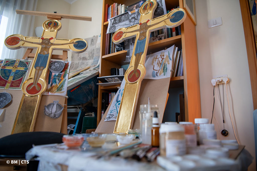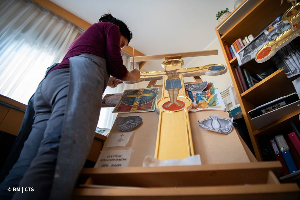W Ziemi Świętej powstała specjalna wersja krzyża – ikony. Jego wymiary (120x70 cm) i kształt pozwalają na używanie go w czasie procesji i nabożeństw w wyznaczonych sanktuariach. Staranny był także wybór materiału: wybrano drzewo cedrowe, bo to właśnie ono według prastarej tradycji było materiałem, z którego sporządzono krzyż Chrystusa. Forma krzyża jubileuszowego dla sanktuarium w Nazarecie nawiązuje do tak zwanego „krzyża kosmicznego”. Końce poszczególnych ramion są zaokrąglone. Dzieło wykonała hiszpańska ikonopisarka Maria Ruiz. Inspirowała się wcześniejszą swoją pracą graficzną dla najnowszego wydania mszału w języku arabskim. „Krzyż Chrystusa daje życie, a jego śmierć nie kończy się w beznadziei, lecz jest źródłem nadziei”, mówi hiszpańska artystka. Tło dla postaci Ukrzyżowanego ma złoty kolor, co symbolizuje chwałę zmartwychwstania. Wybrano charakterystyczną formę krzyża, aby wyrazić powszechność zbawienia dokonanego przez Chrystusa i daru pojednania, danego wszystkim poprzez miłość i życie ofiarowane na krzyżu. To przekonanie oparte jest na słowach Apostoła Pawła: „Zechciał bowiem [Bóg], aby w Nim zamieszkała cała Pełnia, i aby przez Niego znów pojednać wszystko z sobą: przez Niego – i to, co na ziemi, i to, co w niebiosach, wprowadziwszy pokój przez krew Jego krzyża” (Kol 1,19-20). Wizerunek Ukrzyżowanego to ostatni, kulminacyjny moment Jego ofiary: „I skłoniwszy głowę oddał ducha” (J 19,30). To chwila nazywana przez Kościół „pierwszą Pięćdziesiątnicą”, a ducha Chrystusa symbolizuje gołębica Ducha Świętego u góry krzyża.